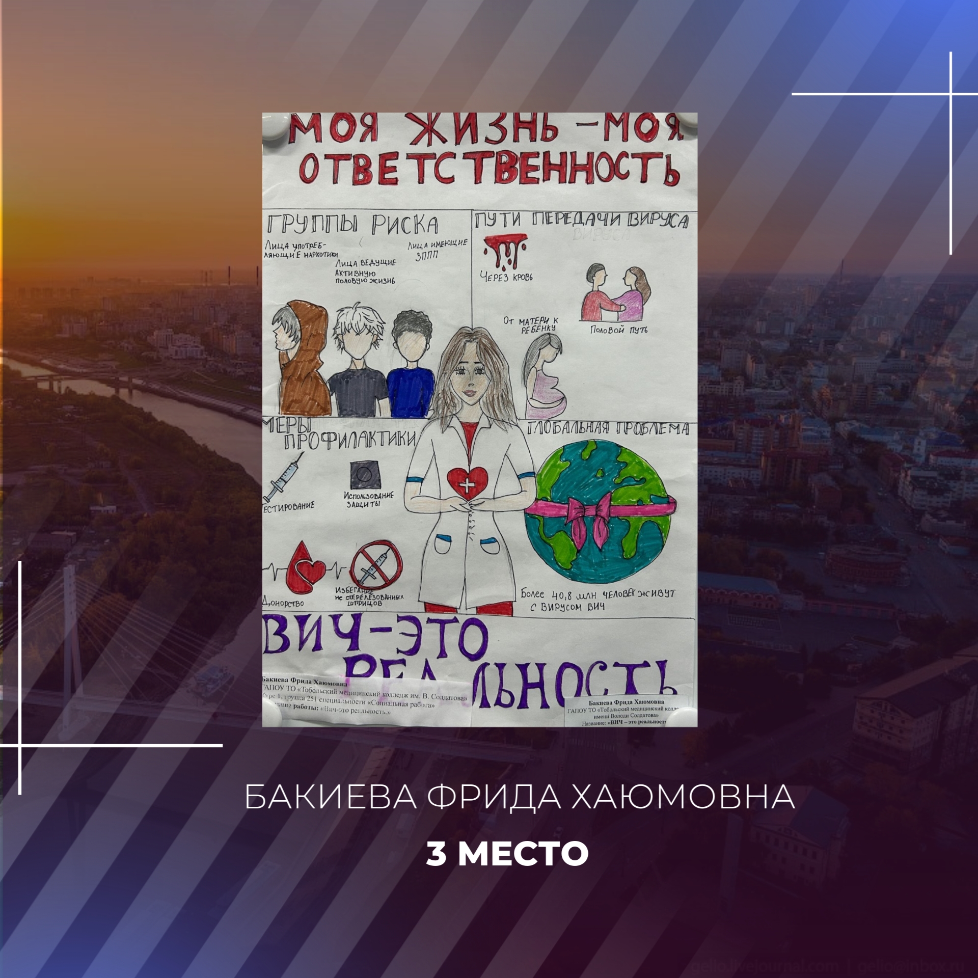 Напомним, что конкурс рисунков «Моя жизнь — моя ответственность» проводился среди школьников и студентов Тюменской области и был приурочен ко Всемирному дню борьбы со СПИД.